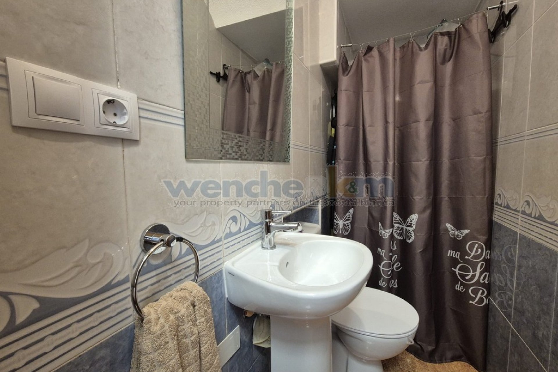 En la planta baja hay un dormitorio con aire acondicionado, ventilador de techo y armario empotrado, junto con un baño con WC y ducha a ras de suelo — ideal para invitados o para vivir cómodamente en una sola planta si se desea.