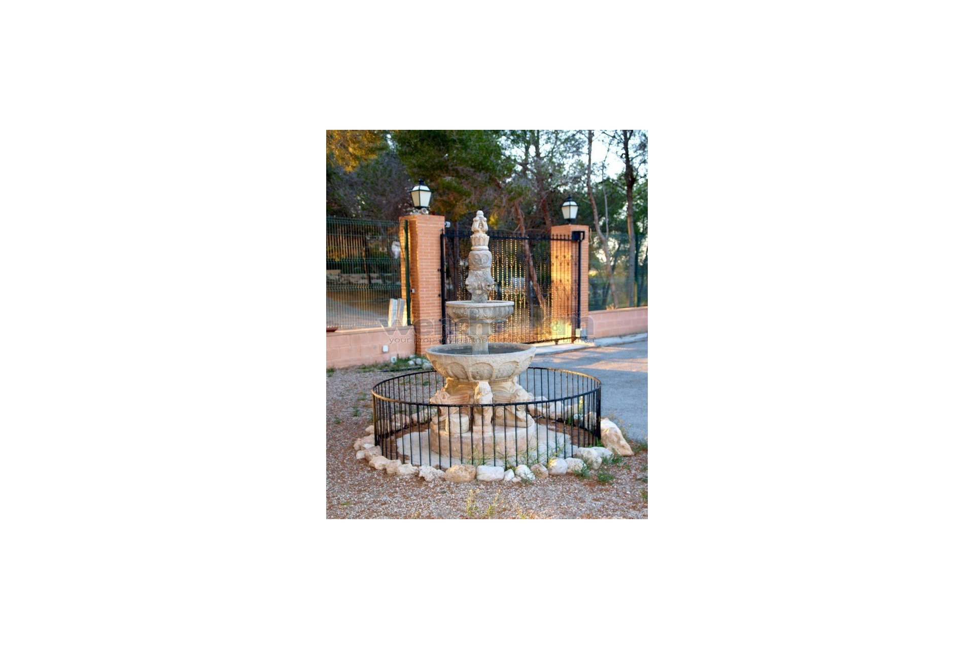 Fincan har elektroniska grindar, en privat pool på 110 m², en separat jacuzzi, en bar med stor terrass, ett uterum, tre garage och en underjordisk vattenbrunn. Den är redan ansluten till kommunalt vatten och el. Från fastigheten kan du njuta av en fantastisk utsikt över landskapet, bergen, saltlagunerna och Torrevieja i fjärran.